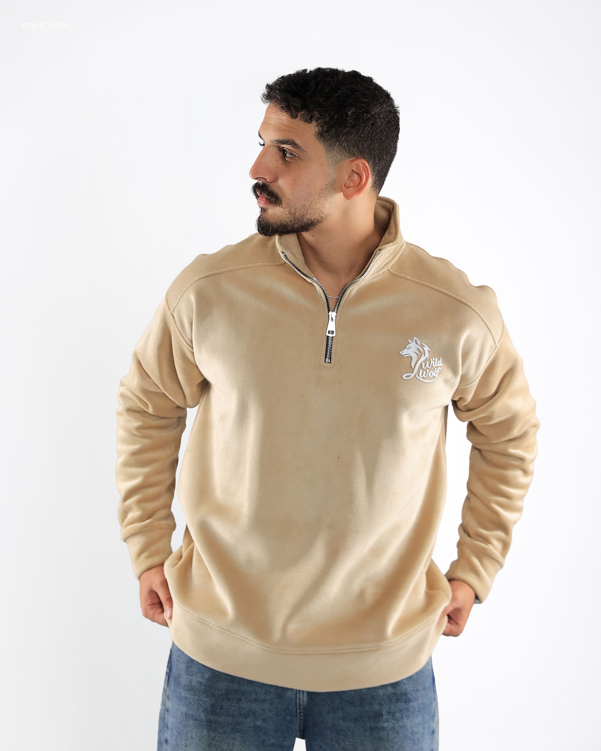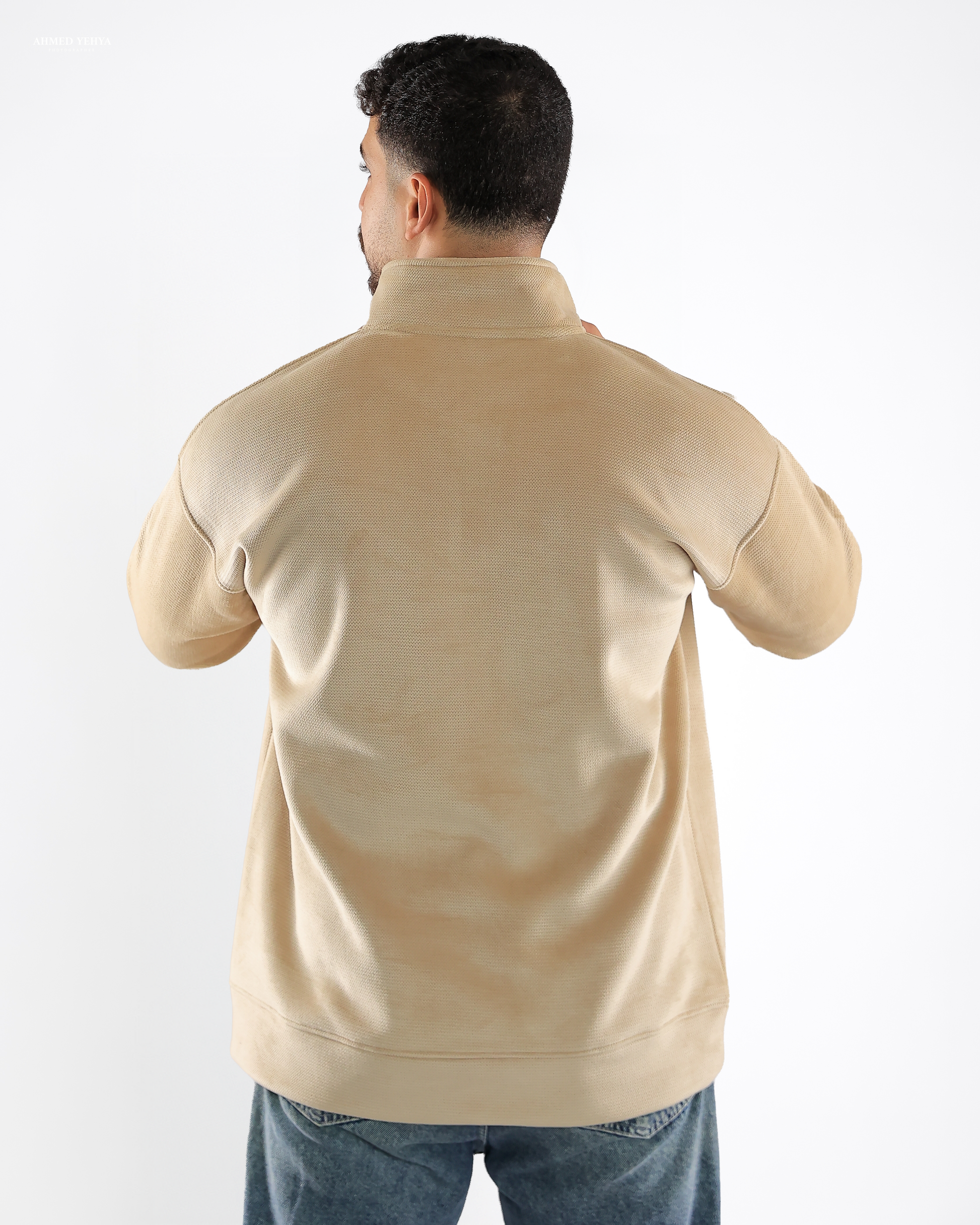 Add a touch of casual elegance to your wardrobe with the Quarter Zip Beige, Velvet Sweatshirt. Crafted from soft velvet fabric, this piece offers a perfect balance of comfort, warmth, and style — ideal for everyday wear or layering during cooler weather.